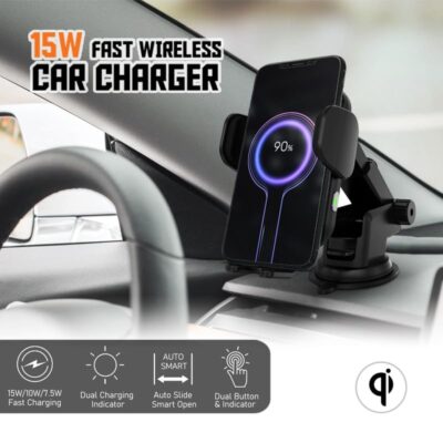 Be the first to review “Wireless Car Charger with 15W Fast Charging and Auto Clamping – Dash & Vent Mounts – Compatible with iPhone 14 to 8 Series, Galaxy S23 to 8, Note 20 to 8, OnePlus 8Pro to 10Pro”