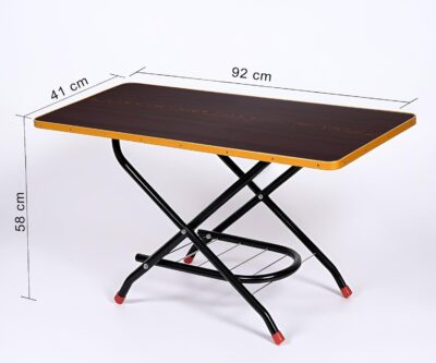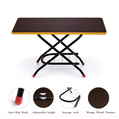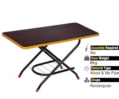 The Wooden Height-Adjustable Foldable Coffee Table is a stylish and functional piece designed to fit any space with ease. Crafted from premium-quality wood, it features a sturdy structure and a smooth, easy-to-clean surface. Its height-adjustable and foldable design allows for effortless customization and compact storage, making it ideal for small apartments, offices, or outdoor setups. Equipped with a convenient storage rack, it provides extra space for books, magazines, or essentials. Perfect as a center table, tea table, or dining table, this multifunctional piece combines elegant design, practicality, and portability, enhancing both comfort and aesthetics in your home or workspace.