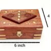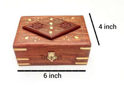 This wooden jewellery box crafted from premium Sheesham wood showcases detailed hand carving and intricate brass work that adds a traditional and artistic touch. Designed in a small, compact size, it is perfect for storing rings, earrings, nose pins, and tiny trinkets securely. The natural brown finish enhances its rich wooden texture, making it both functional and decorative. Its sturdy build ensures long-lasting durability while maintaining a refined handcrafted charm. Ideal for gifting on birthdays, anniversaries, festivals, and meaningful celebrations, it suits women of all ages. Lightweight and easy to place on any dresser, shelf, or vanity, it complements both modern and classic décor. This jewellery organizer combines elegance, craftsmanship, and practicality in a thoughtful keepsake box.