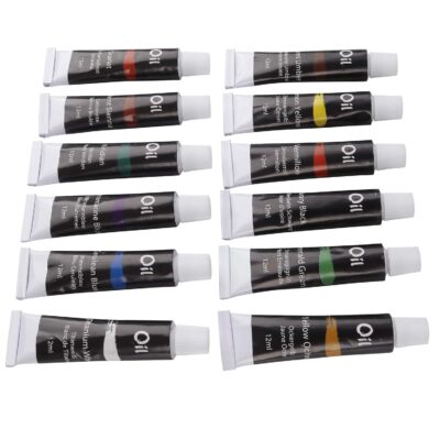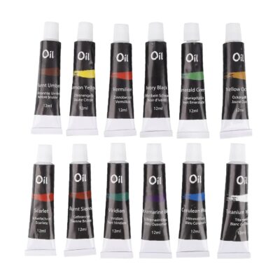 This set includes 12 x 12ml oil paint tubes, offering a versatile range of shades for blending, layering, and creating professional-quality oil paintings.