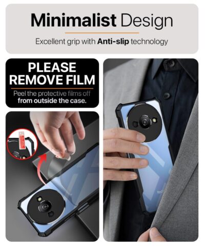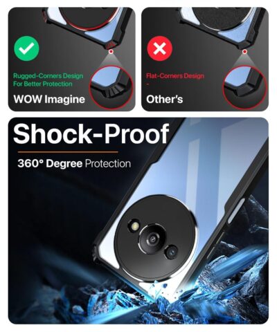 WOW IMAGINE Clear Back Case offers rugged protection with a sleek transparent design for Mi Redmi A3, A3X, and Poco C61. Built with Hybrid AirEDGE technology combining premium TPU edges and a durable PC back panel, it provides excellent shock absorption against drops and impacts. Raised bezels around the screen and camera keep them safe from scratches and scuffs, while precise cutouts ensure easy access to all ports and buttons. Lightweight, flexible, and anti-smudge, this slim case maintains your phone’s original look with 360° protection and wireless charging support.