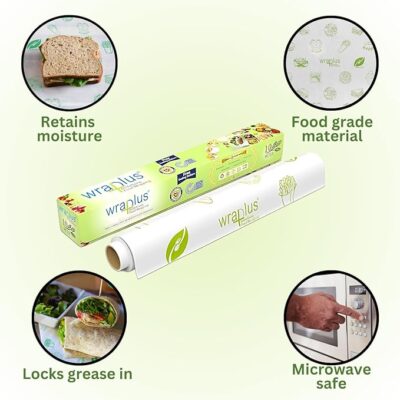 Be the first to review “Wraplus Multipurpose Food Wrapping Paper Roll | Perfect for Packing and Serving | Oilproof, Reusable Wrap (10M-Pack of 4)”