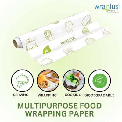 Wraplus Multipurpose Food Wrapping Paper Roll (10 M, Pack of 4) is a practical and versatile solution for everyday food packing and serving needs. Made from high-quality, oilproof material, this wrapping paper helps keep food fresh while preventing grease and moisture seepage. Designed for repeated use, it is ideal for wrapping snacks, sandwiches, baked items, and takeaway food, as well as for serving and storage. Durable and easy to handle, Wraplus food wrapping paper is suitable for home kitchens, cafés, bakeries, and food businesses looking for a convenient and economical packaging option.