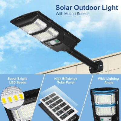 XERGY 50W Solar LED Street Light with Remote – 96 LEDs, Motion Sensor, Dusk to Dawn Sensor, IP67 Waterproof, 3W Solar Panel, 2000mAh Battery – Outdoor Lighting for Garden, Yard, Driveway, Garage