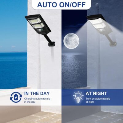 The XERGY 50W Solar LED Street Light is designed to deliver dependable illumination for outdoor spaces using solar-powered energy. Equipped with 96 bright LEDs, it provides wide and uniform lighting coverage. The built-in motion sensor and dusk-to-dawn sensor ensure automatic and energy-efficient operation. Remote control functionality allows convenient adjustment of lighting modes and settings. With an IP67 waterproof rating, it performs reliably in heavy rain and harsh outdoor environments. Ideal for gardens, yards, driveways, and garages, this light combines durability with smart lighting technology.