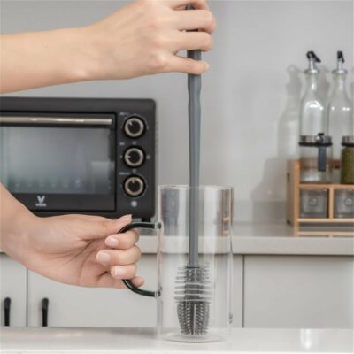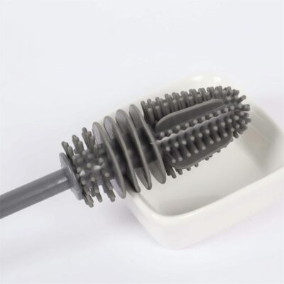 XML Bottle Cleaning Brush Silicone Long Handle for Baby Bottle, Water Bottle, Containers, Vase and Glass, Bottle Cleaner for Home and Kitchen Accessories Item Products (31-CM-Silicone-Grey-Brush)