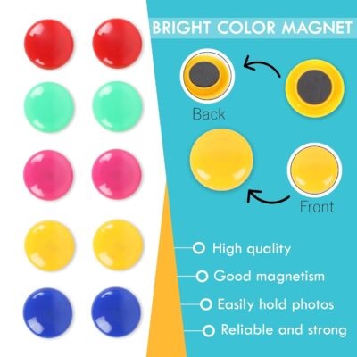 YAJNAS Fridge Magnet Pack of 10 Colorful Magnet for Fridge, Magnetic White-Boards - Sticky Stick Notes, Photos, Charts Notice Board/Planning Magnets - Fridge Magnetic Button, 30 mm, Random Color