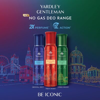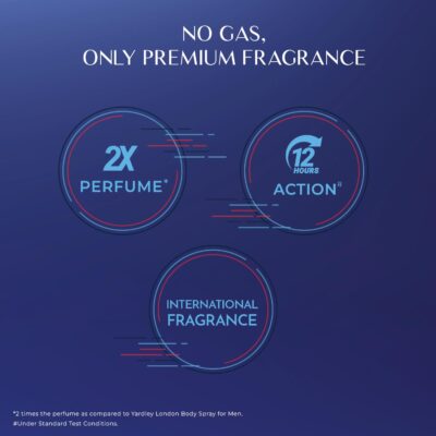 A 120 ml no‑gas deodorant spray for men by Yardley London, offering double-strength fragrance and up to 12 hours of freshness.