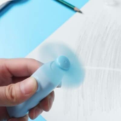 Equipped with a built-in fan, it gently blows away eraser dust, keeping the workspace clean and tidy. Ideal for drawing, sketching, homework corrections, and creative projects, this electric eraser encourages kids to explore art without fear of mistakes. Powered by 2 AAA batteries (not included), it offers convenience, precision, and fun in every use.