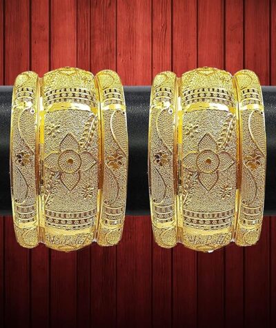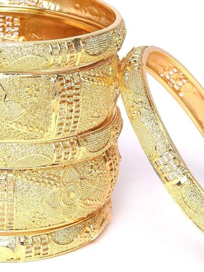 Enhance your traditional jewellery collection with this elegant set of 6 YouBella gold plated bracelet bangles, crafted to offer the rich look of original gold at an affordable price. With a classic design and lustrous finish, these bangles beautifully reflect light and add a touch of sophistication to any outfit. Perfect for weddings, festivals, family gatherings, and cultural celebrations, this versatile set pairs effortlessly with sarees, lehengas, salwar suits, and ethnic dresses. Lightweight and comfortable for all-day wear, these bangles make a thoughtful gift for girls and women who love timeless, stylish accessories that elevate every look. A must-have addition to your jewellery box for festive and everyday occasions alike.