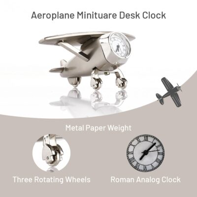 ZAHEPA Aeroplane Miniature Table Clock & Paperweight – Vintage Metal Desk Decor