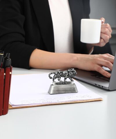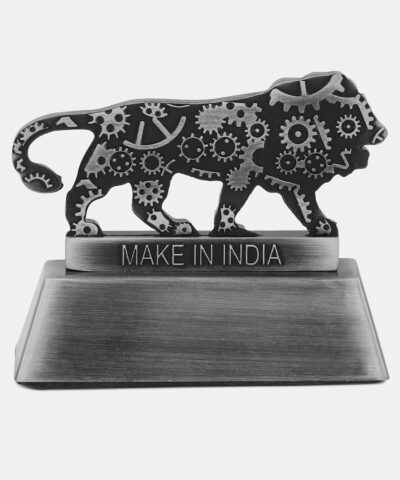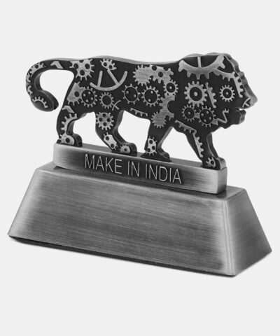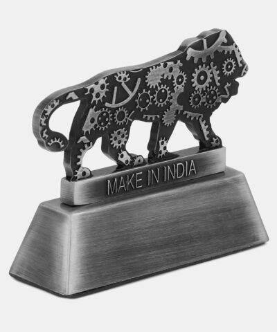 Stylish Make in India themed metal paperweight for office desks and home décor — compact, sturdy, and eye-catching.
