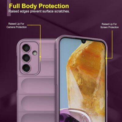 Zapcase Liquid Silicone Magic Case for Samsung Galaxy M35 5G combines elegance and protection in a sleek lavender finish. Made from imported high-grade TPU material, it offers superior shock absorption and a smooth matte texture for a premium feel. The inner suede lining prevents scratches, while raised lips safeguard the camera and screen from daily wear. Designed for a perfect fit with precise cutouts and responsive buttons, it supports wireless charging and features a grooved back for enhanced grip and a refined, stylish look.