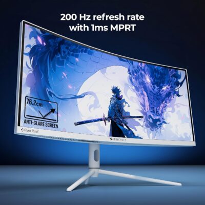 ZEBRONICS N30A 30″ Curved Ultrawide Gaming Monitor is a 30-inch (76.2 cm) ultrawide curved gaming display engineered to deliver immersive visuals, smooth performance, and rich color accuracy for gamers and multimedia users alike. Sporting a WFHD 2560×1080 resolution with a 21:9 aspect ratio, it stretches your field of view for a more cinematic experience while maintaining crisp detail across the screen. The 1500R curved panel enhances immersion by wrapping the display around your vision, and a 200 Hz refresh rate paired with a 1 ms MPRT response time ensures ultra-smooth motion with minimal blur — ideal for fast-paced games and dynamic content. With Adaptive Sync support, screen tearing and stutter are reduced when paired with compatible GPUs, giving you responsive gameplay. The monitor also boasts HDR10 support and broad color coverage (99 % sRGB, 95 % DCI-P3) for vivid visuals and accurate hues, plus up to 300 nits brightness and an anti-glare surface for comfortable viewing. Connectivity is versatile with 2× HDMI, 2× DisplayPort, and a 3.5 mm audio out jack, while ergonomic features like tilt, swivel, and height adjustments help you find your ideal setup for long sessions. Overall, this curved ultrawide offering balances performance, immersion, and visual quality for gaming, productivity, and entertainment.