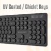 The keyboard’s slim design and silent, comfortable keys make typing less tiring, and it includes a retractable stand for better typing ergonomics.