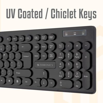 The ZEBRONICS K24 Wired USB Keyboard is a full-size wired keyboard designed for everyday computing tasks with comfort and reliability. It features a standard 104-key layout that’s suitable for typing, office work, web browsing, and general use with desktops or laptops. The keys are UV-coated for durability and rated for up to 8 million keystrokes, offering long life and consistent performance over time. The keyboard’s slim design and silent, comfortable keys make typing less tiring, and it includes a retractable stand for better typing ergonomics. With a 1.5-meter textured cable and USB plug-and-play connection, it’s easy to set up and use immediately without any drivers. This model combines durability with simple usability, making it a practical choice for home, office, or study setups at an affordable price.