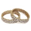 Featuring a rich gold-plated finish and beautifully studded with sparkling white Kundan stones, these bangles are designed in a graceful floral pattern that instantly elevates your style.