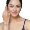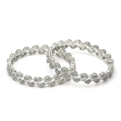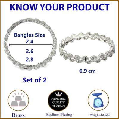 Elevate your style with this stunning ZENEME jewellery piece featuring beautifully designed gold-plated bangles adorned with sparkling American diamonds in an elegant leaf pattern. These bangles exude sophistication and charm, making them perfect for both festive celebrations and everyday glamour. The intricate leaf-shaped design adds a touch of nature-inspired beauty, while the brilliant finish catches the light to enhance your look. Lightweight, comfortable to wear, and versatile in style, this set complements both traditional ethnic wear and modern outfits. A fabulous accessory for parties, weddings, or gifting to the special women in your life.