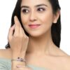 Add a touch of timeless elegance to your jewellery collection with the ZENEME Rhodium-Plated American Diamond Leaf Shaped Kada Bracelet. Designed with a beautiful leaf motif encrusted with sparkling American diamonds, this bracelet captures nature-inspired grace and sophistication.