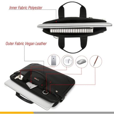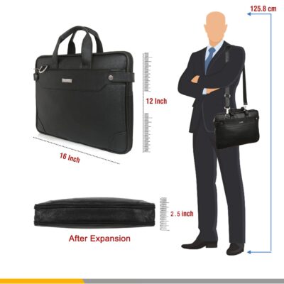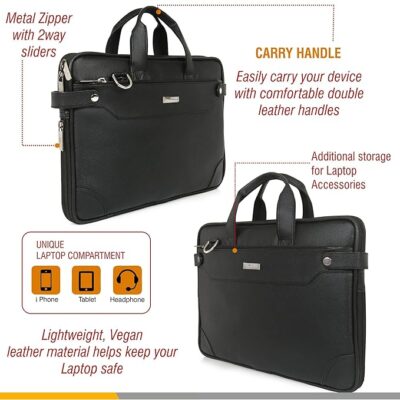 Zipline Laptop bags for men office use | Faux Leather Laptop Bag for Man - Fits 14/15.6/16 inch Laptop, Macbook, Macbook Pro Messenger Bags for Mens (1-Black Bag)