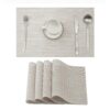 Zollyss Linen Grey Placemats Heat Resistant Non-Slip Place Mats For Dining Table, Washable Durable Pvc Vinyl Woven Table Mats ,5