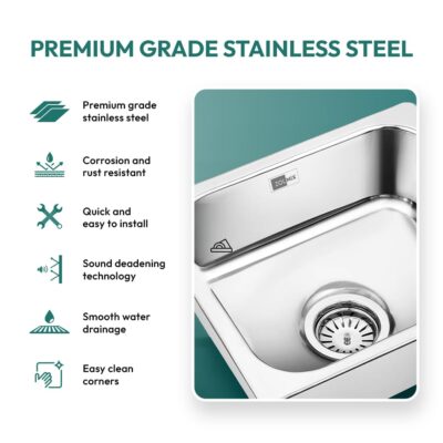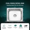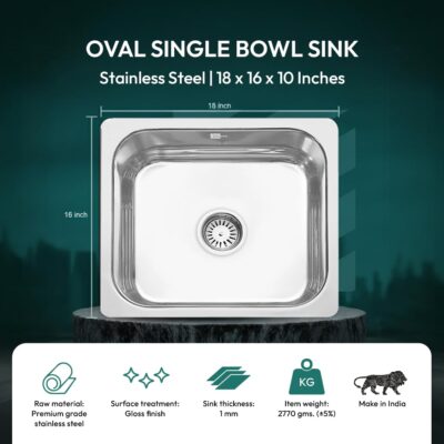 Zolmix® Premium 304 Stainless Steel Kitchen Sink (18x16x8 Inches, Oval Bowl, Polished Finish) is a high-quality, durable kitchen sink engineered for modern homes. Made from 304-grade stainless steel with 1MM thickness, it offers excellent rust resistance, corrosion protection, and long-lasting performance. The oval bowl design with curved corners ensures smooth cleaning and efficient water drainage, while the polished finish adds a sleek, contemporary look. Equipped with a weightless foam pad, it reduces noise and absorbs impact, and its heat- and impact-resistant construction ensures durability under daily use. Ideal for residential kitchens, this sink combines style, functionality, and superior craftsmanship for a reliable and elegant kitchen solution.